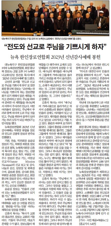 복음뉴스 제공 2023년 1월 23일(월) 자 뉴욕일보 A3면 기사