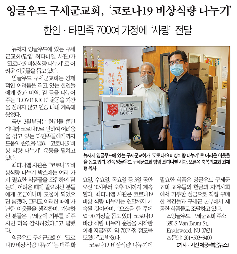 복음뉴스 제공 2020년 6월 10일(수) 자 뉴욕일보 A2면 기사 PDF 파일로 보기 ==> https://www.bogeumnews.com/pdf/93.pdf