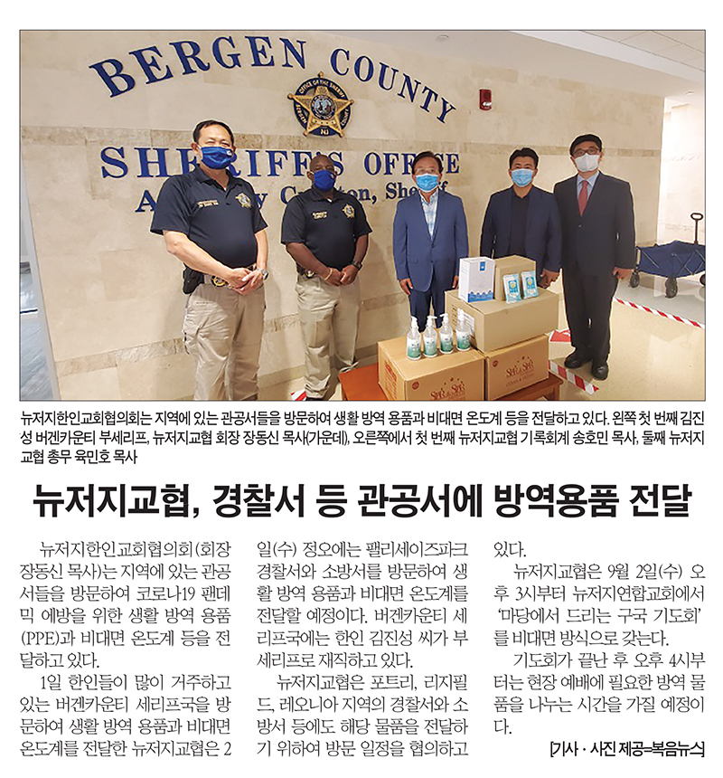 뉴저지교협, 경찰서 등 관공서에 방역용품 전달