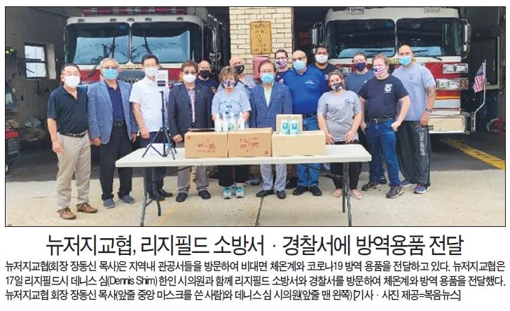 뉴저지교협, 리지필드 소방서 경찰서에 방역 용품 전달