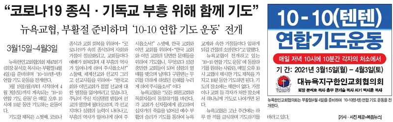 복음뉴스 제공 2021년 3월 17일(수) 자 뉴욕일보 A2면 기사