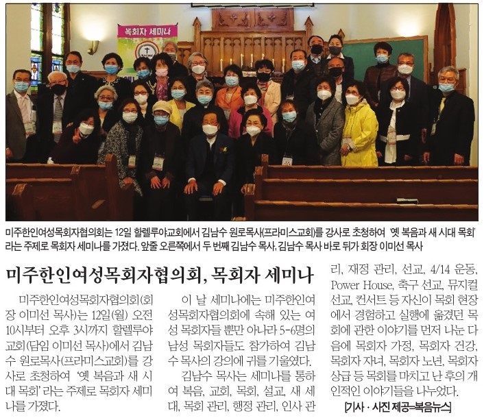 복음뉴스 제공 2021년 4월 20일(화) 자 뉴욕일보 A2면 기사
