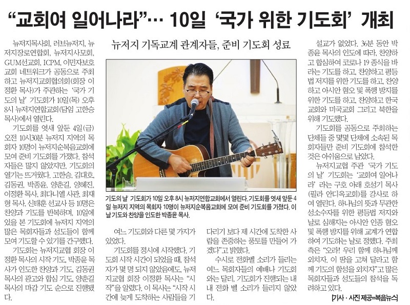 복음뉴스 제공 2021년 6월 5일(토) 자 뉴욕일보 A3면 기사