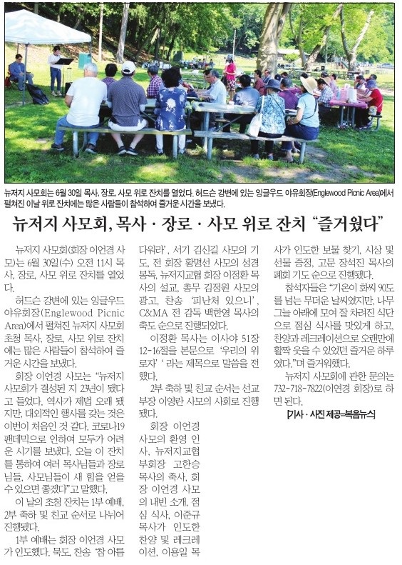 복음뉴스 제공 2021년 7월 3일(토) 자 뉴욕일보 A3면 기사