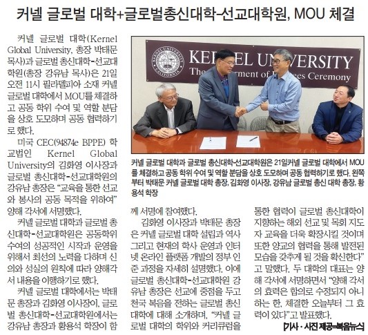 커넬 글로벌 대학 + 글로벌총신대학-선교대학원, MOU 체결