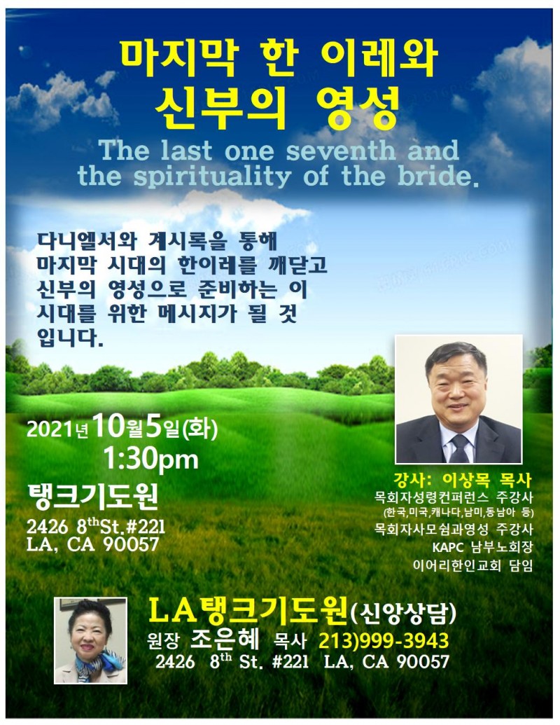 LA탱크기도원  원장 조은혜 목사 213)999-3943