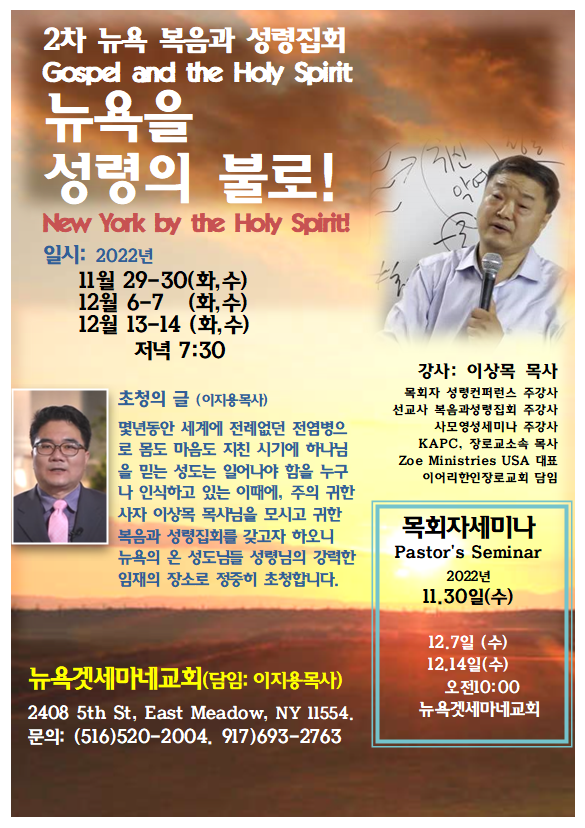 2차 (뉴욕)복음과 성령컨퍼런스 강사: 이상목목사