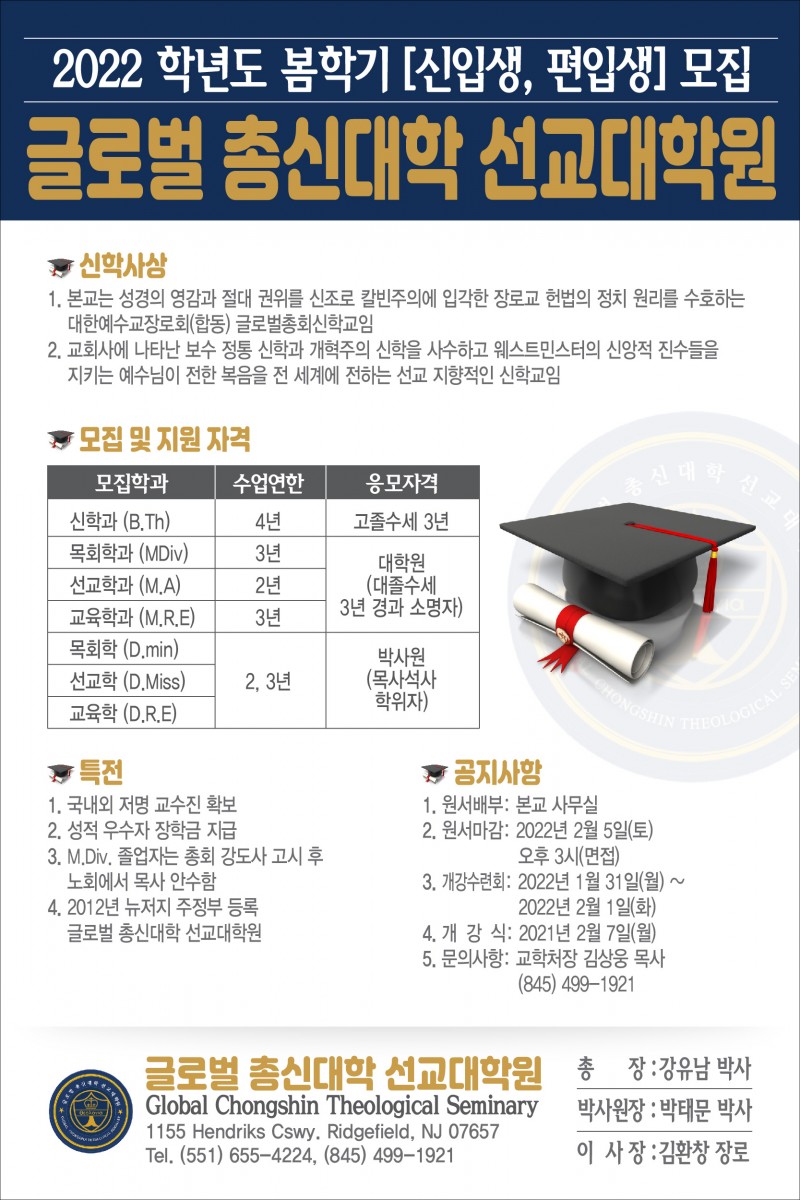 글로벌총신대학,선교대학원 2022학년도 봄학기 신입생 및 편입생 모집 공고