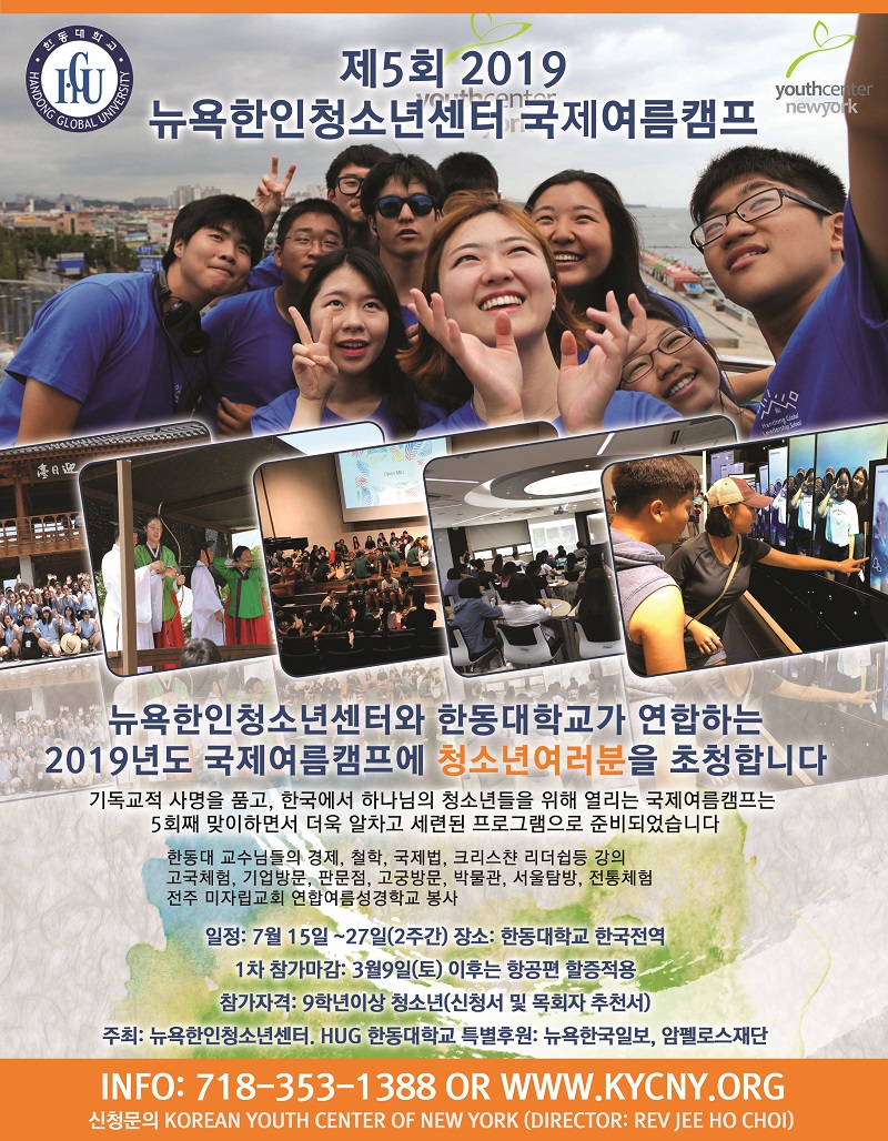 뉴욕한인청소년센터에서는 2019년 제5회 한동대학교 국제여름캠프 참가자를 모집합니다.