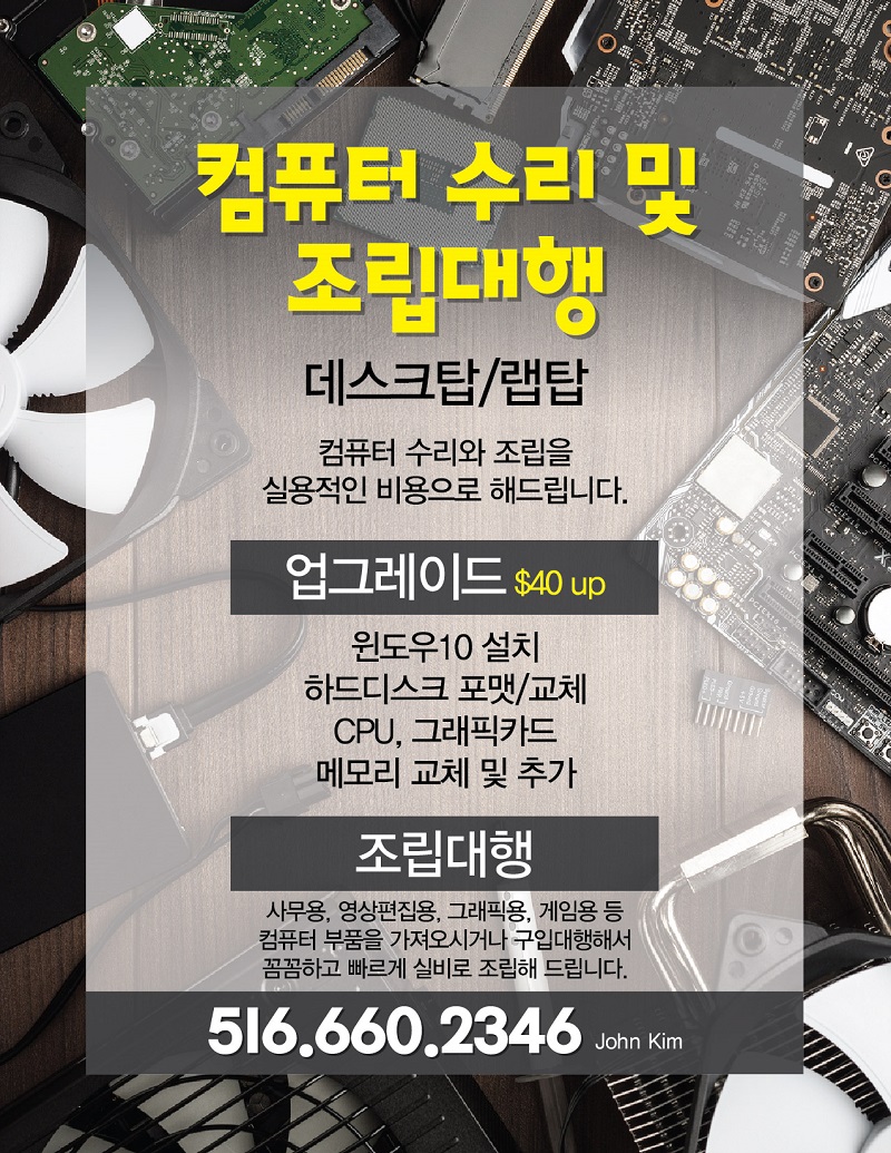 컴퓨터 수리 및 조립 대행 (전화 : 516-660-2346)