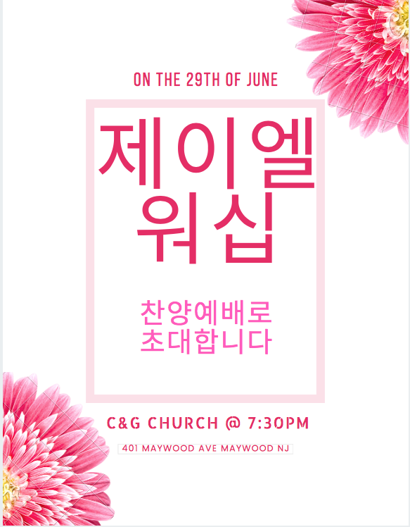 장소: C&G 교회(401 Maywood Ave Maywood NJ)