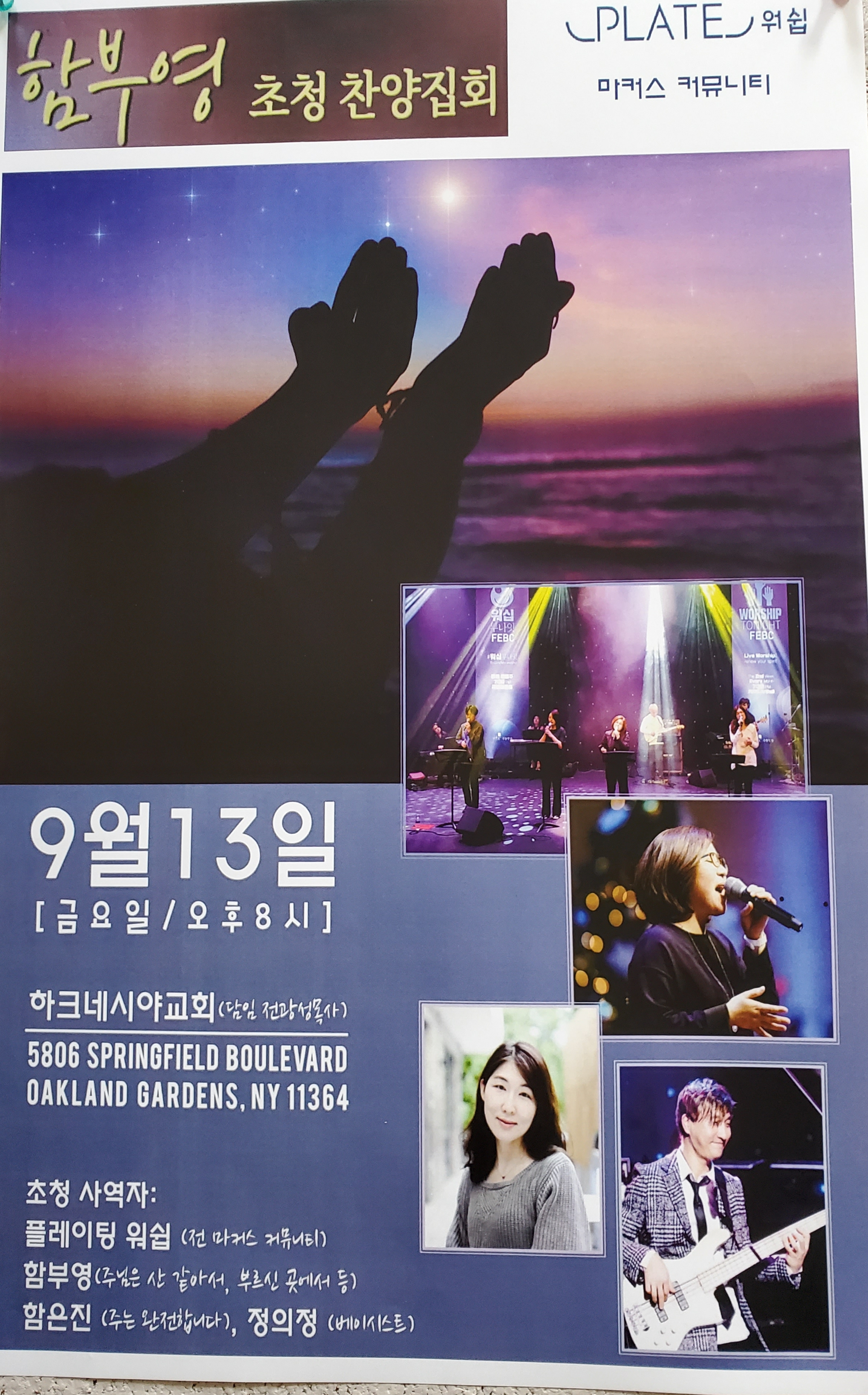하크네시야교회에서 오는 9월13일 금요일 오후 8시 찬양집회를 갖습니다