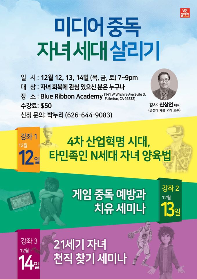 12월 낮은울타리 LA지부에서 신상언 선교사님(낮은울타리 대표)을 모시고 <미디어중독 자녀세대 살리기> 세미나를 엽니다.