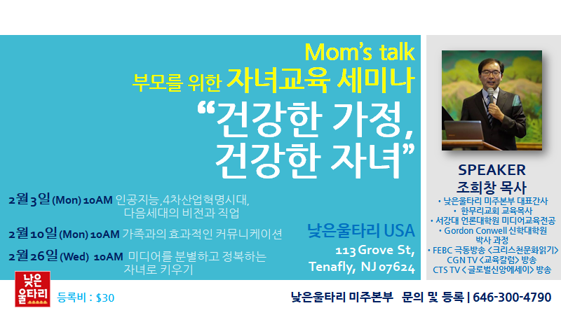 3주과정의 <Mom's Talk 자녀교육세미나>가 열립니다.