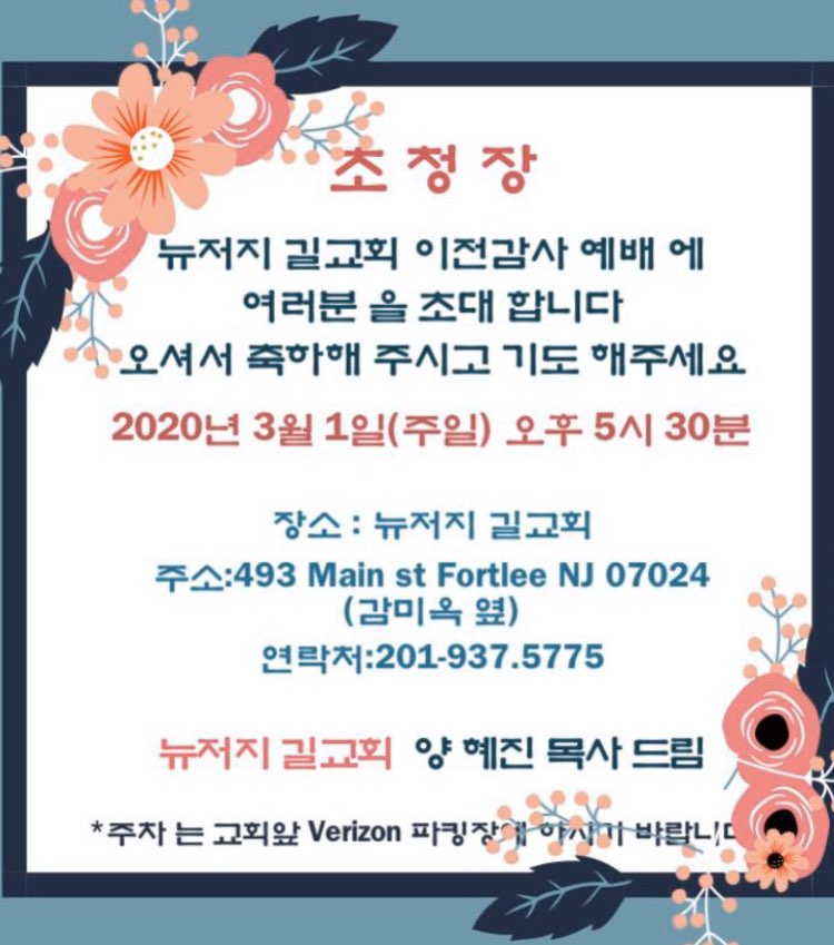 뉴욕교협 2023년 신년감사예배 및 하례식 초청
