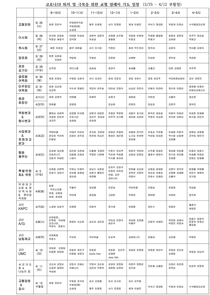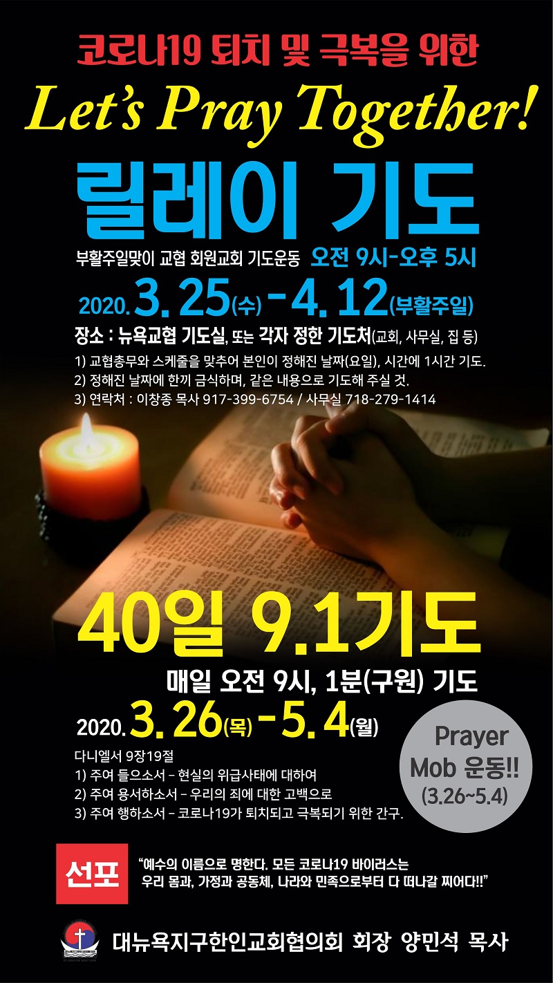 코로나 퇴치 및 극복을 위한 릴레이 기도