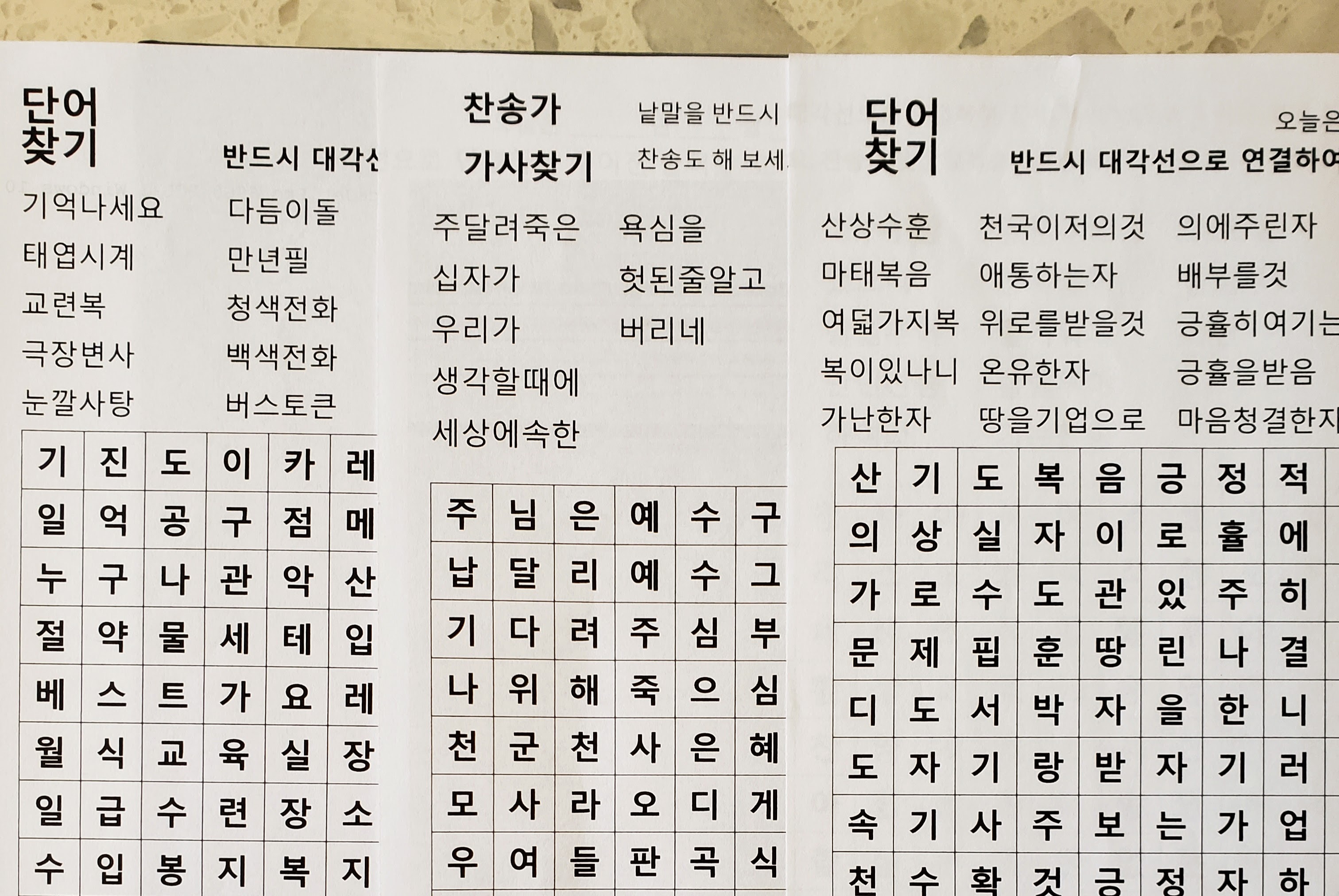 한인 시니어분들의 치매예방과 교육자료를 개발하고 제공하는 비영리단체인 KASLI (Korean American Silver Lining Initiative) 에서 자체제작한 한글 단어찾기 퍼즐을 무료로 제공합니다. 아무도 예상치 못한 사태로 지금 누구 하나 어렵지 않은 분이 없지만, 시니어들은 활동에 극심한 제약을 받으시면서 영육간에 많은 어려움과 답답함을 겪고 계십니다. 그동안 의지가 되었던 교회는 물론이고 지역사회 시니어 프로그램도 모두 중단된 상태에서 시니어들의 스트레스는 이만저만이 아닙니다.