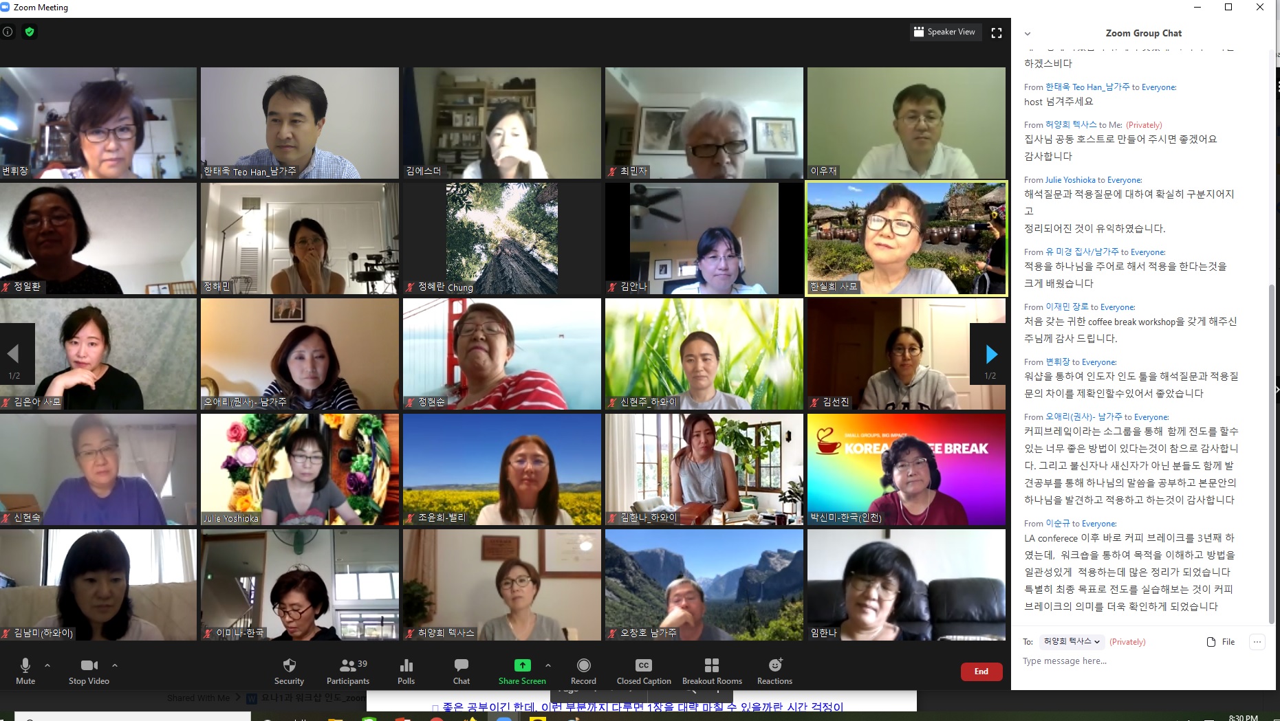 지난 2월말 면대면 모임을 못할 것을 대비하여 커피브레이크 소그룹들은 온라인 모임에 대한 교육과 준비를 시작했다. 처음엔 어렵고 미심쩍어 하던 온라인 소그룹 모임들이 한 두번의 시도로 확신을 갖게 되고 점차 모이다가 이젠 자리를 잡아 원거리에 있는 지인들을 초대하거나 시간이 맞지 않아 함께 하지 못하던 분들을 초대하는 등 과거보다 지경을 넓혀 말씀 소그룹이 더욱 활성화 되고 있다.