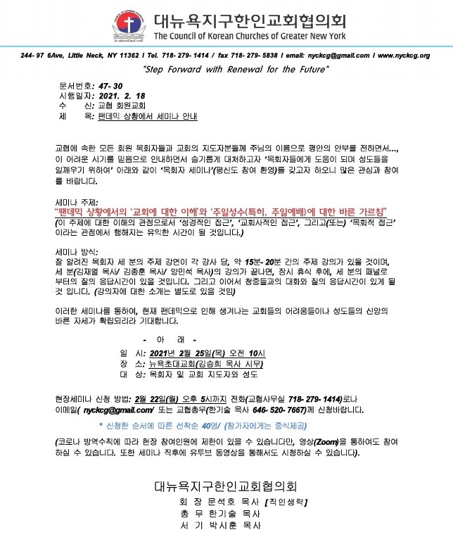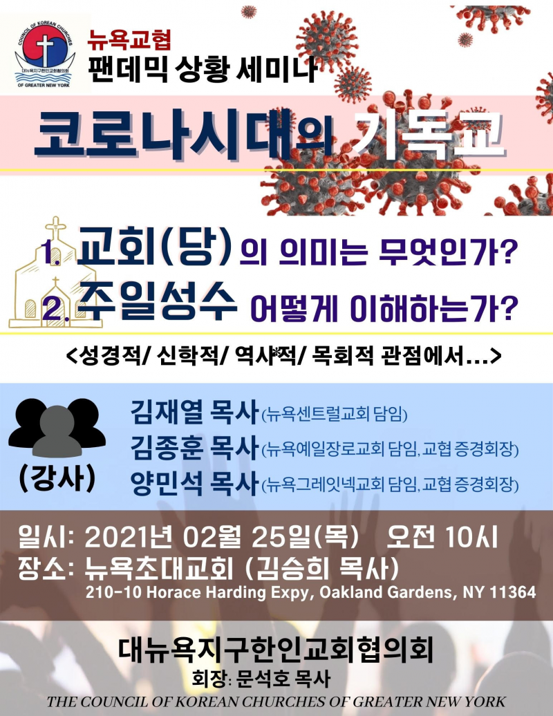 주제: 뉴욕교협세미나 '코로나 시대의 기독교'
