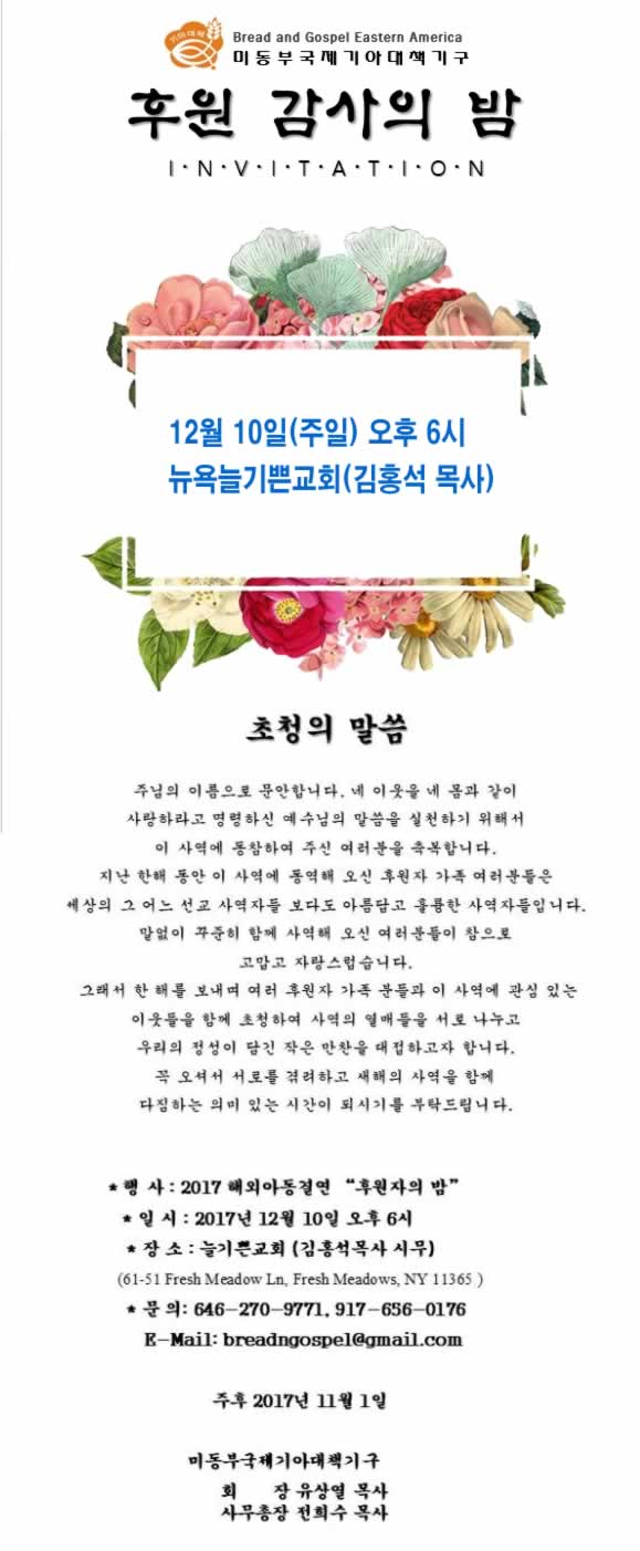 미동부국제기아대책기구 후원 감사의 밤