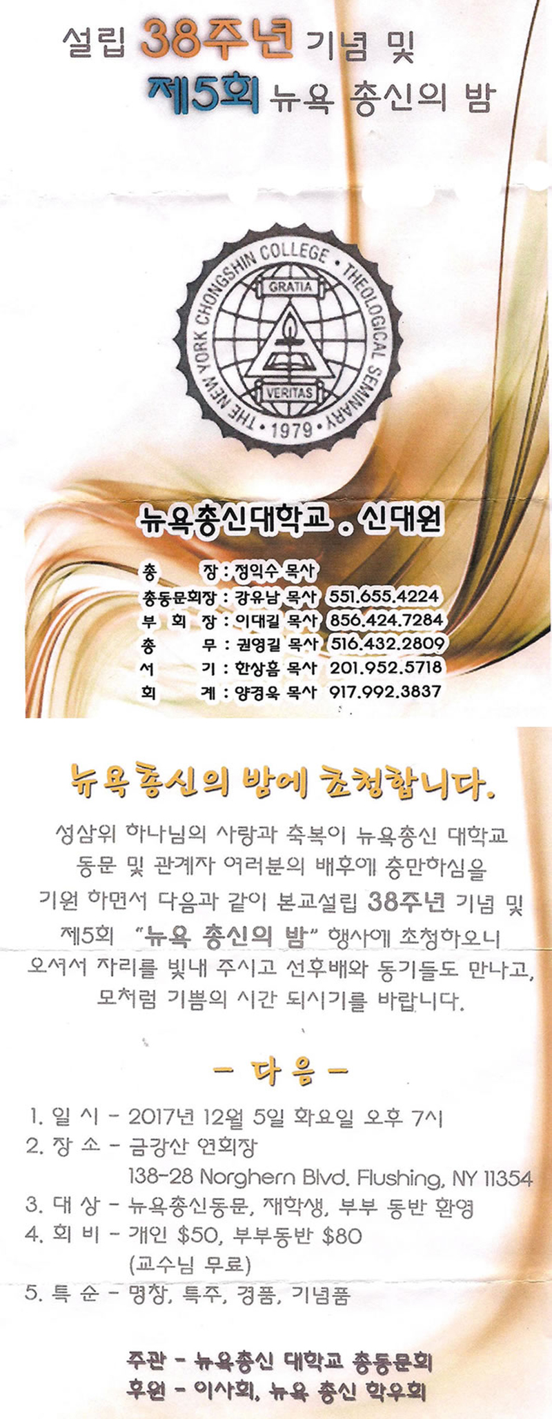 설립 38주년 기념 및 제5회 뉴욕총신의 밤