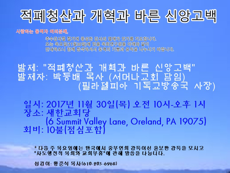 필라목회연구원 11월 30일 강좌 안내