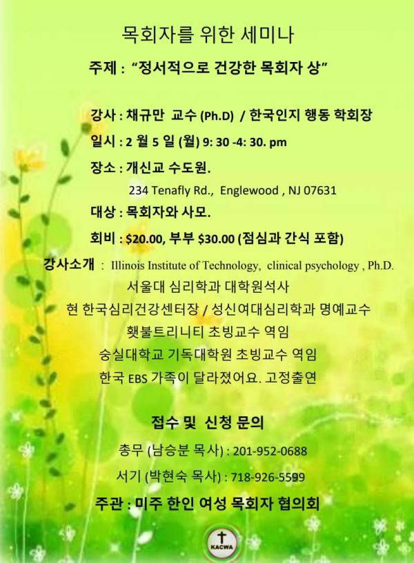 목회자 세미나 “정서적으로 건강한 목회자 상”