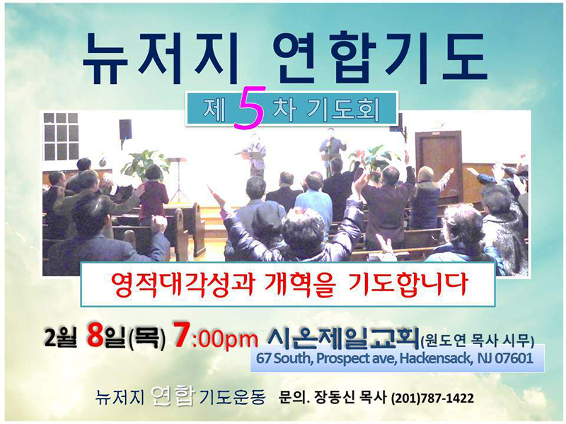 뉴저지 연합 기도 운동 제5차 기도회 - 2월 8일 오후 7시