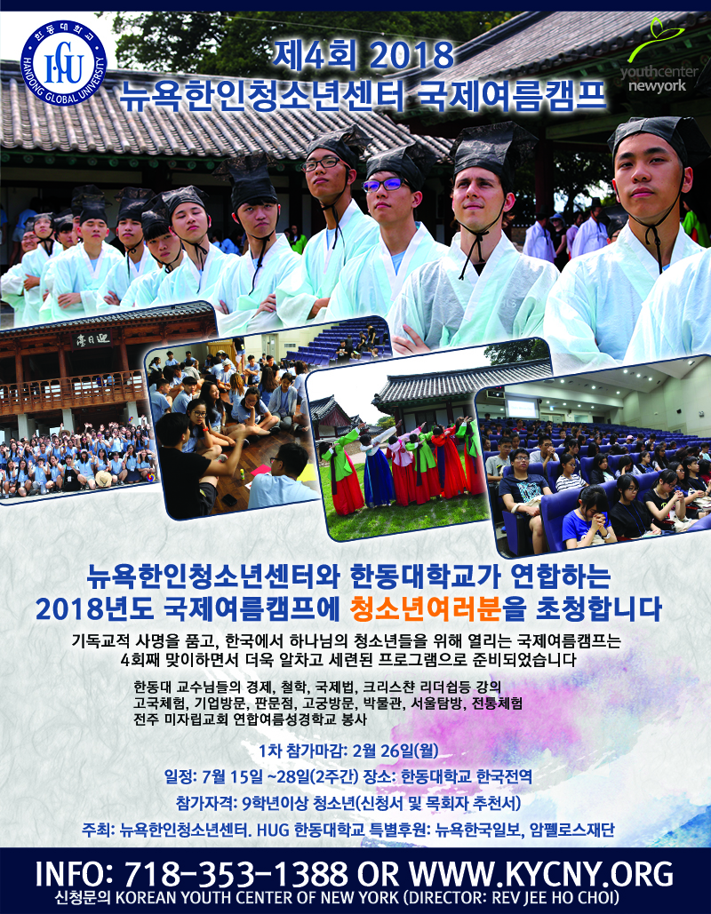 뉴욕한인청소년센터에서는 2018년 제4회 한동대학교 국제여름캠프 참가자를 모집합니다.