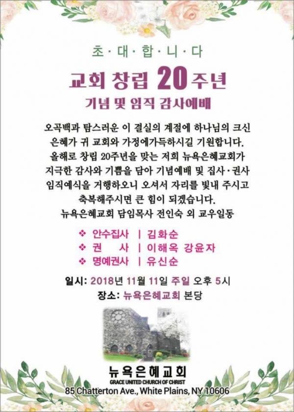 뉴욕은혜교회 20주년 기념 및 임직예배