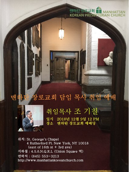 맨하탄장로교회 조기칠 담임목사 취임 예배