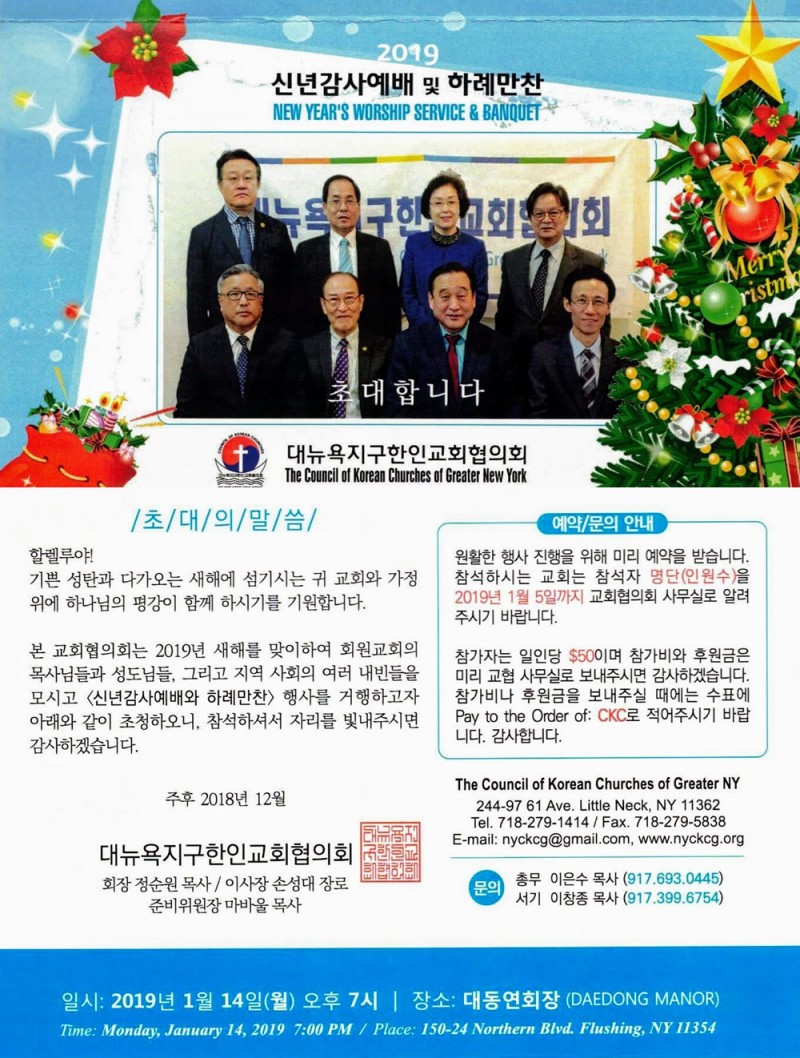 뉴욕교협 2023년 신년감사예배 및 하례식 초청