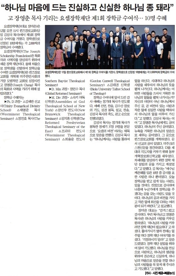 복음뉴스 제공 2022년 8월 13일(토) 자 뉴욕일보 A2면 기사