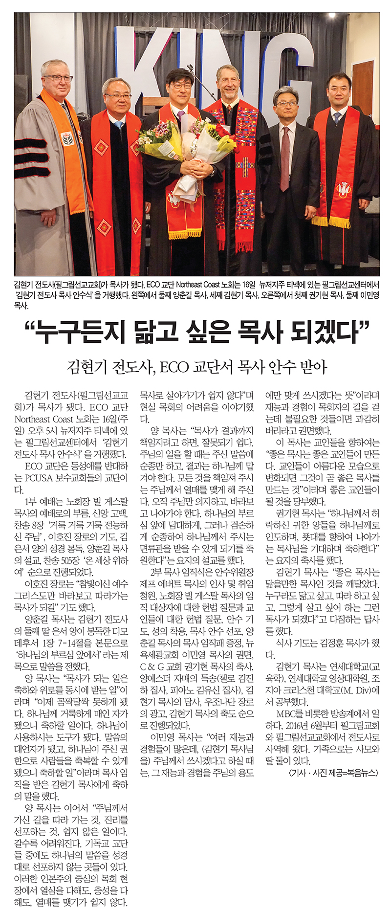 "누구든지 닮고 싶은 목사 되겠다" - 김현기 전도사, ECO 교단서 목사 안수 받아