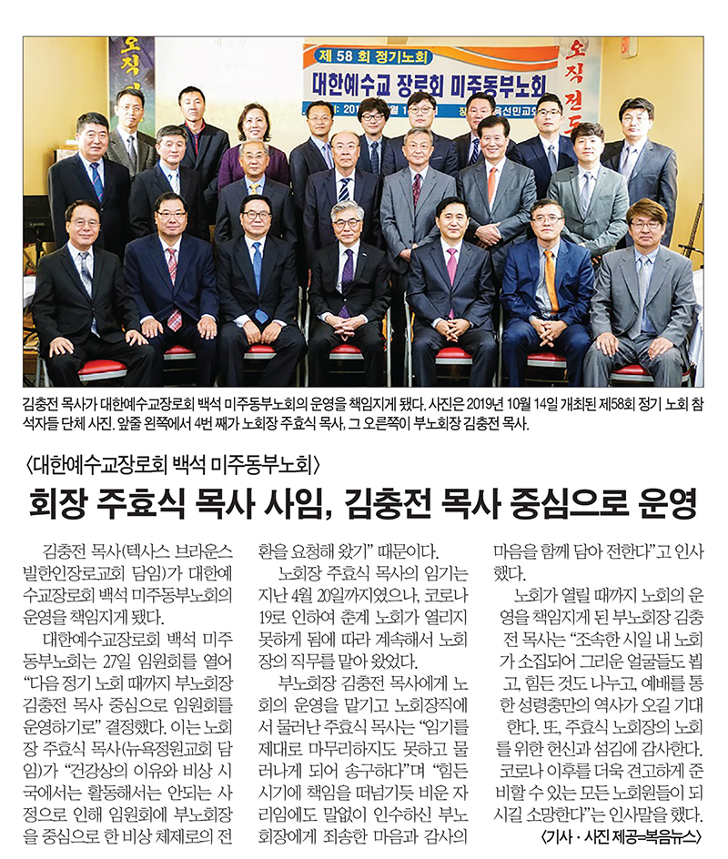 회장 주효식 목사 사임, 김충전 목사 중심으로 운영