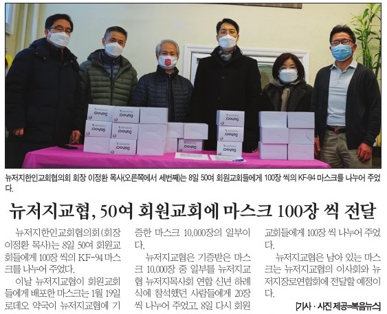 뉴저지교협, 50여 회원교회에 마스크 100장 씩 전달