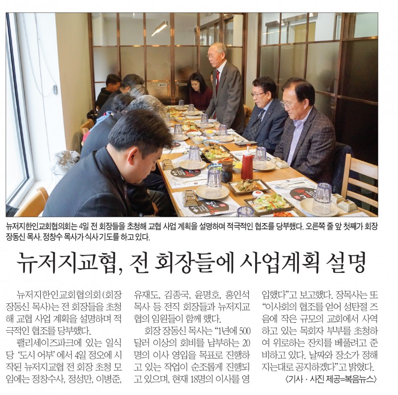 뉴저지교협, 전 회장들에 사업계획 설명