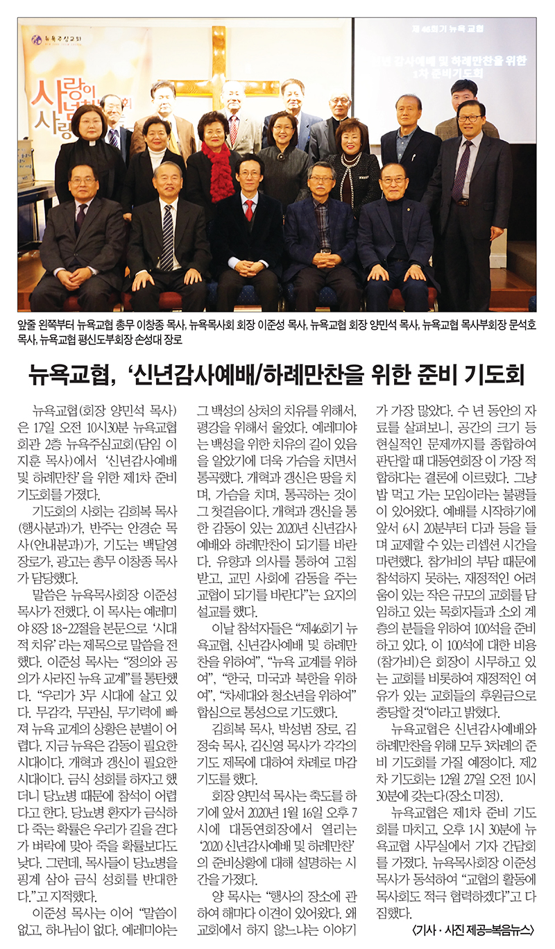 복음뉴스 제공 2019년 12월 19일(목) 자 뉴욕일보 A4면 기사 PDF 파일로 보기 ==> https://www.bogeumnews.com/pdf/40.pdf
