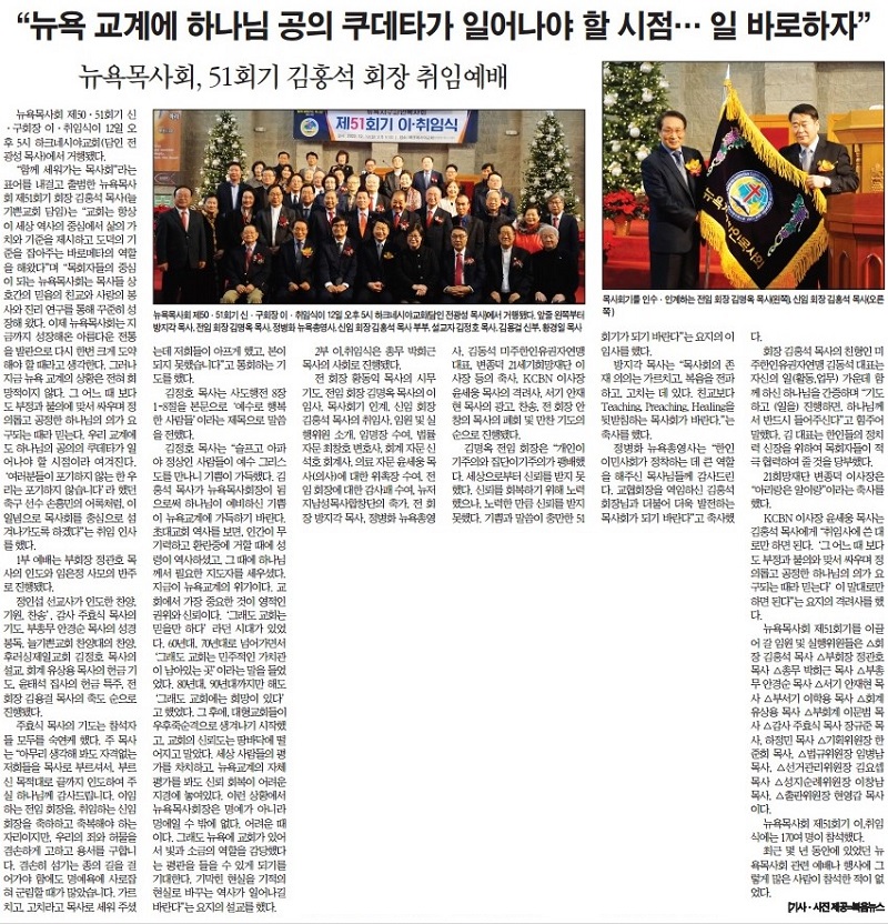 복음뉴스 제공 2022년 12월 14일(수) 자 뉴욕일보 A3면 기사