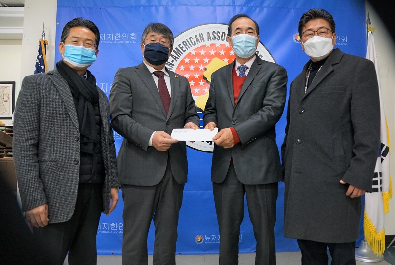 뉴저지 한인회관에서 이루어진 성금 전달식에는 뉴저지목사회 총무 김주동 목사, 서기 이창성 목사, 홍보분과 김동욱 목사가 함께 했다.