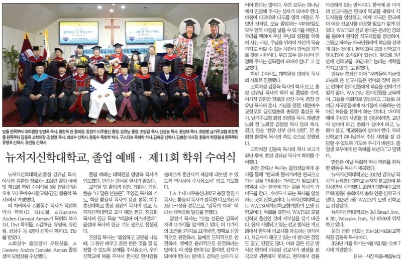 복음뉴스 제공 2025년 5월 24일(금) 자 뉴욕일보 A4면 기사
