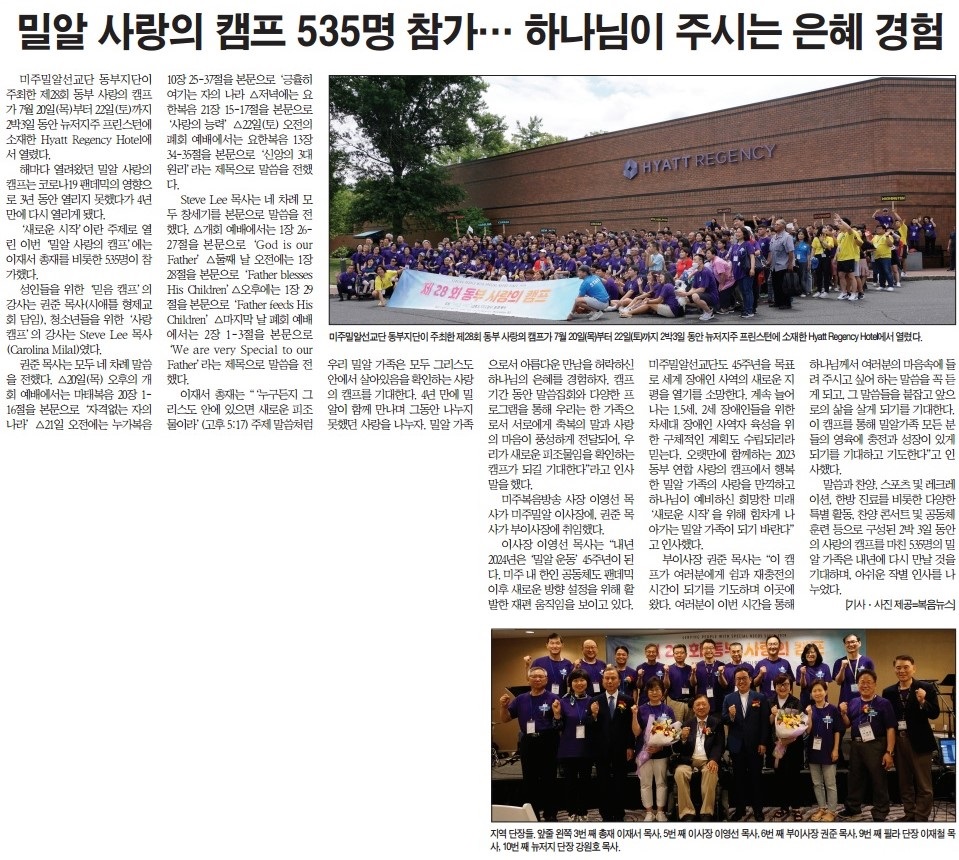 복음뉴스 제공 2023년 7월 24일(월) 자 뉴욕일보 A4면 기사