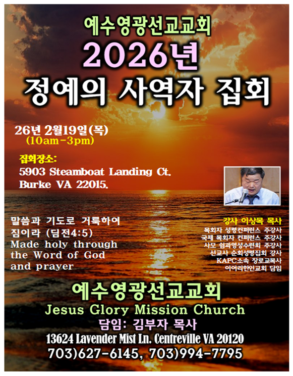 정예의 사역자(목회자) 집회, 이상목목사를 강사로하여 버지니아 와싱톤디시에서 개최하다.
