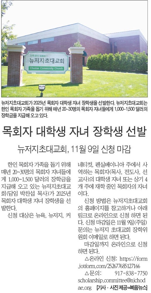목회자 대학생 자녀 장학생 선발