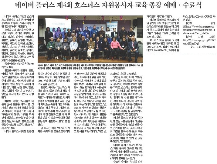 네이버 플러스 제4회 호스피스 자원 봉사자 교육 종강 예배 및 수료식