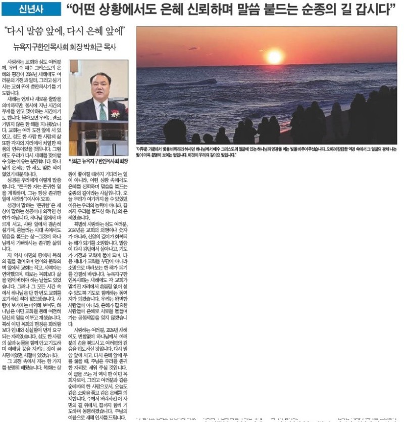 복음뉴스 제공 2026년 1월 3일(토) 자 뉴욕일보 A10면 기사